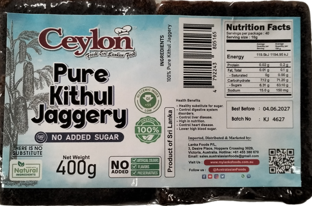 CEYLON 440g Pure Kithul Jaggery (NO ADDED SUGAR - 100% Natural Food Product)